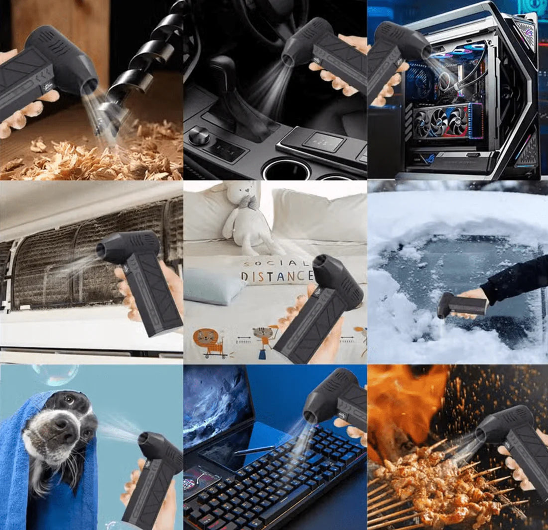 🔧 تطبيقات متعددة: مثالي لتنظيف مكونات الكمبيوتر، إزالة الغبار من الأماكن الصعبة الوصول إليها، أو توفير نسمة هواء منعشة في الأيام الحارة.